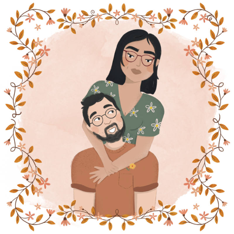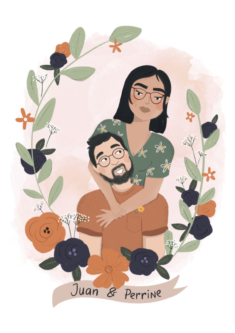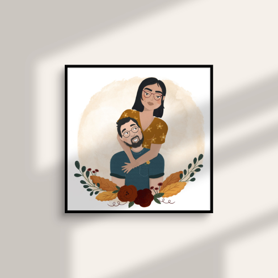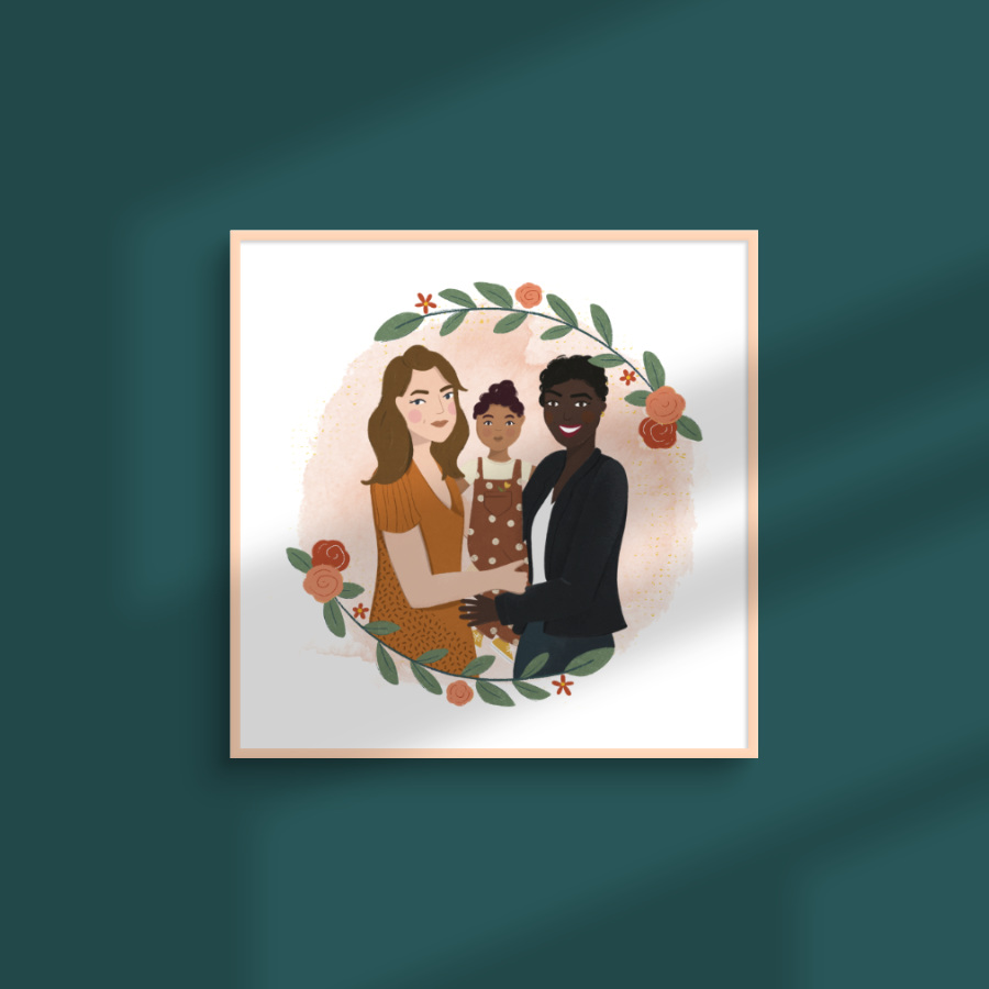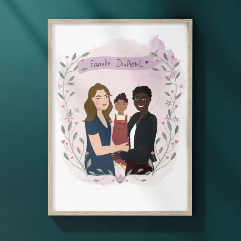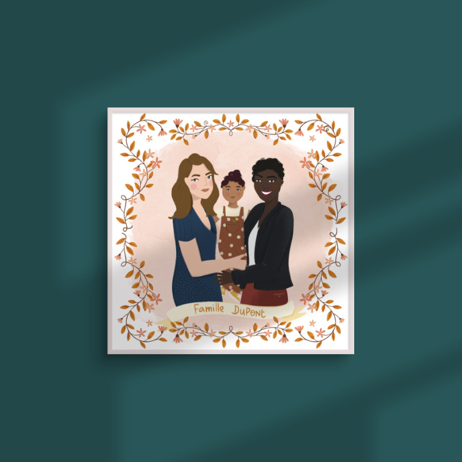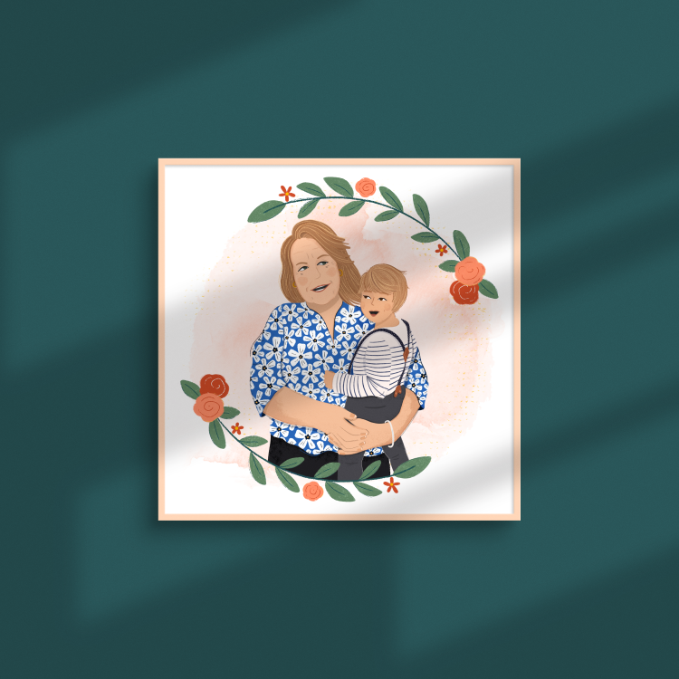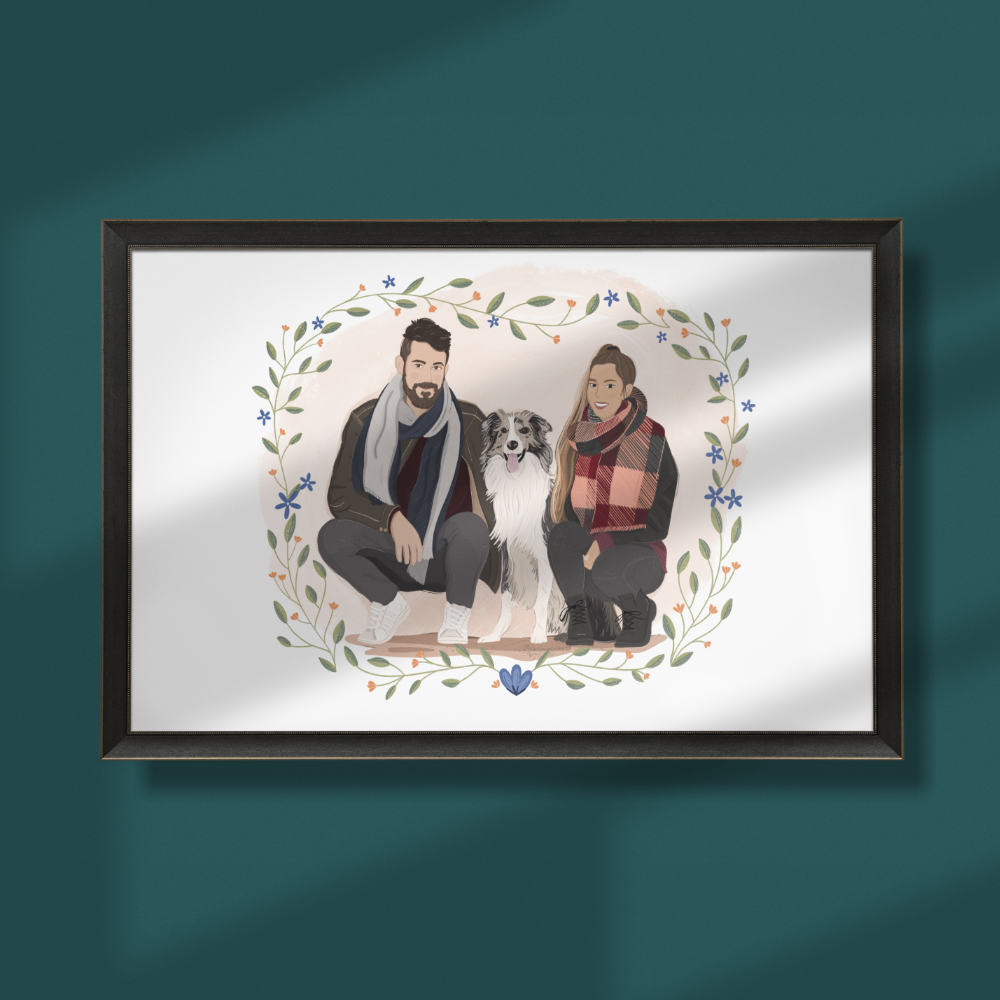 Un portrait illustré pour un cadeau personnalisé et original ! Cadre au choix parmi la galerie et couleurs de votre choix.
