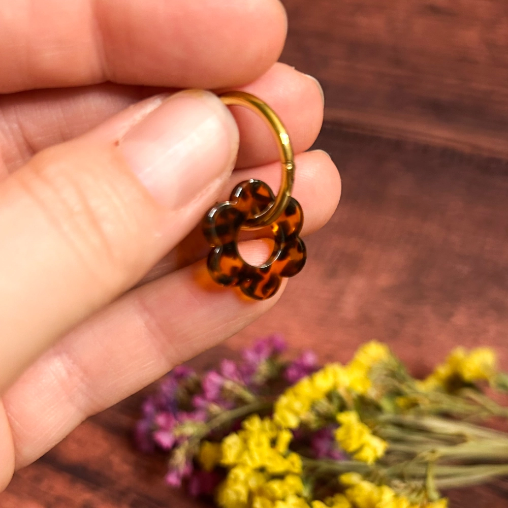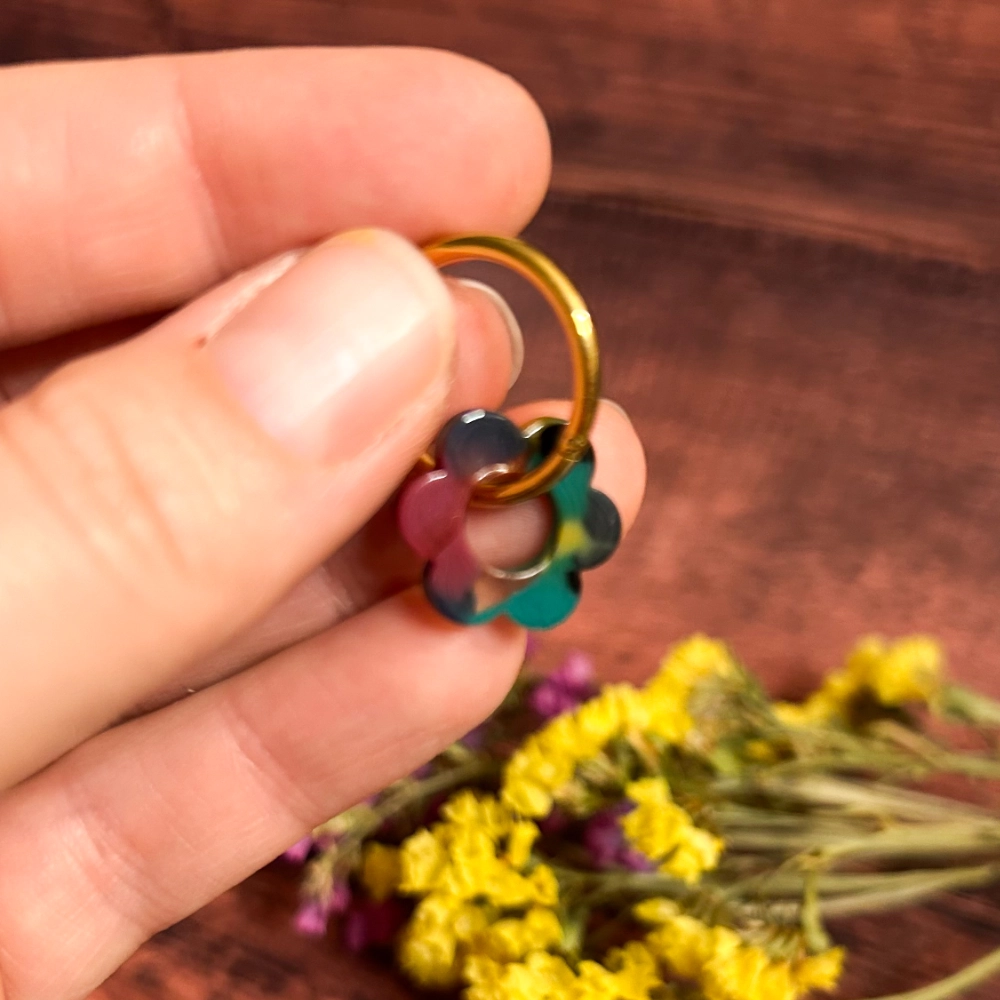 ✿ Anneau en acier inoxydable et fleur en acétate.
